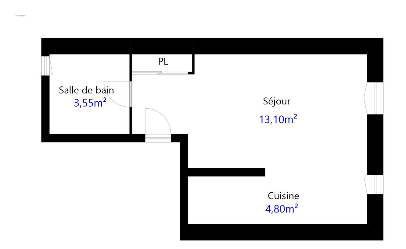 Il se compose d'une pièce à vivre, un coin cuisine rénové semi-équipé, une salle d'eau neuve avec wc, placard.